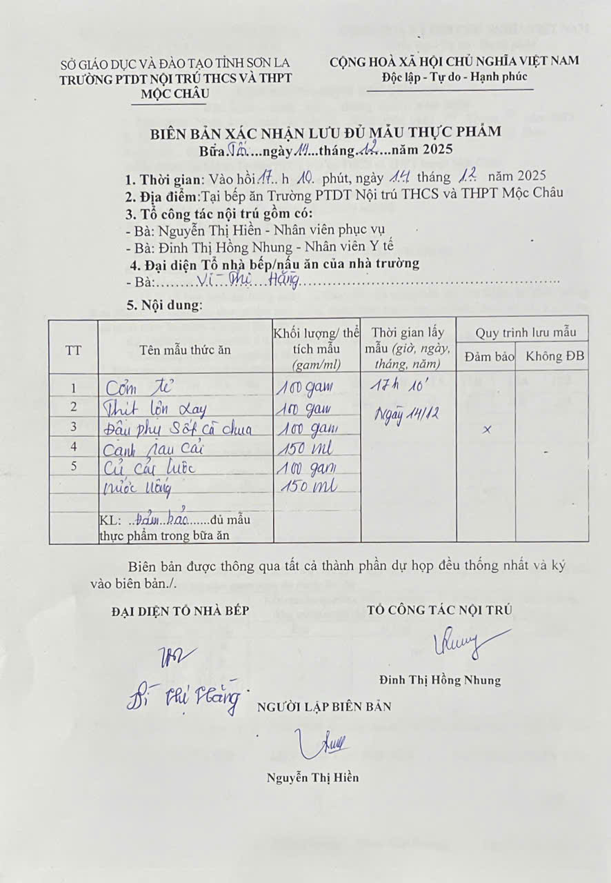 Hình ảnh và biên bản bữa sáng,trưa ngày 14/12/2025