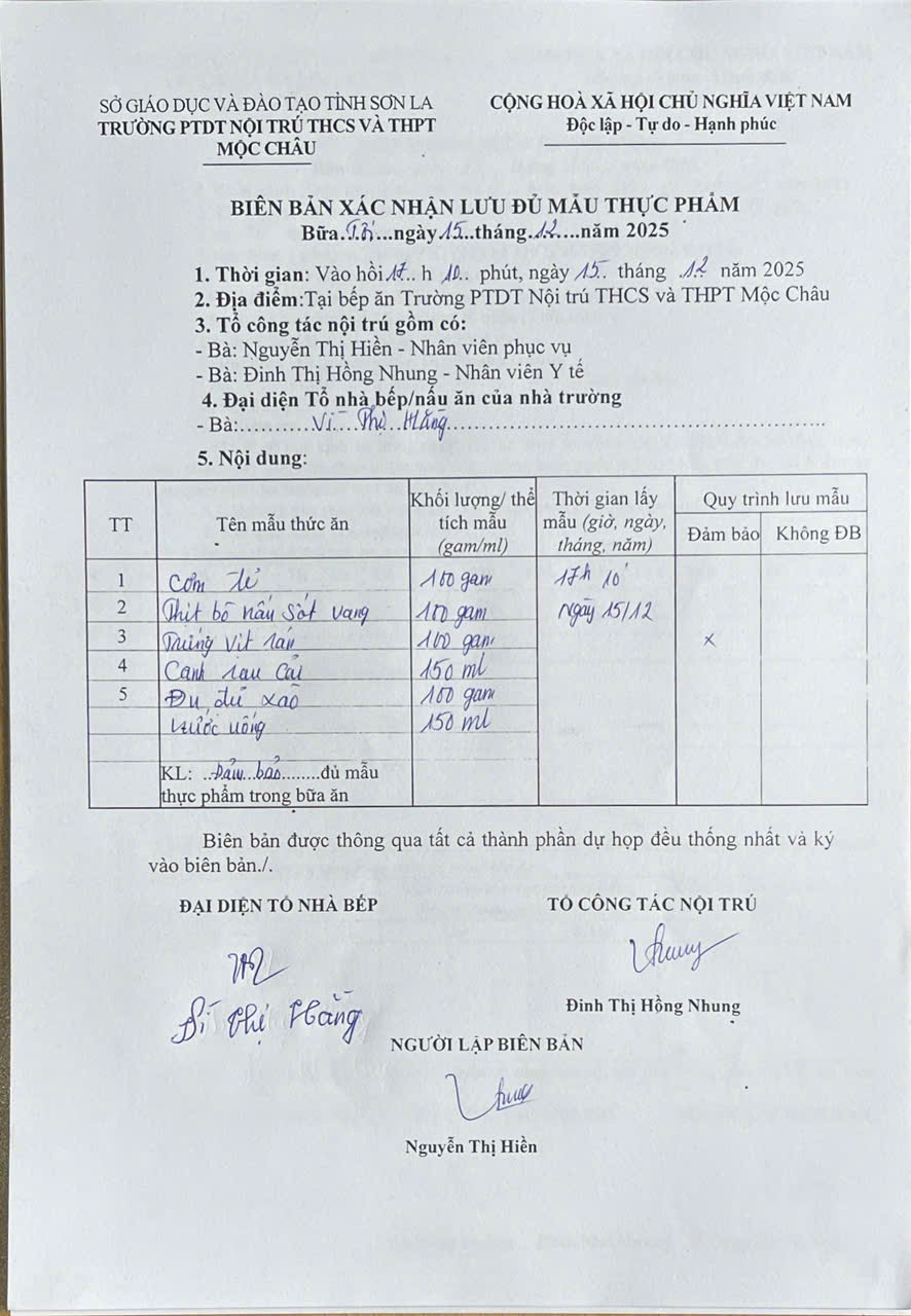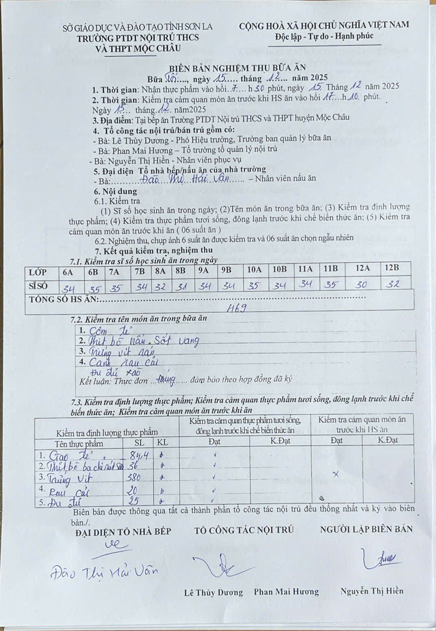 Hình ảnh và biên bản bữa sáng,trưa ngày 15/12/2025