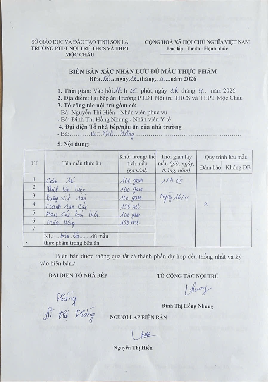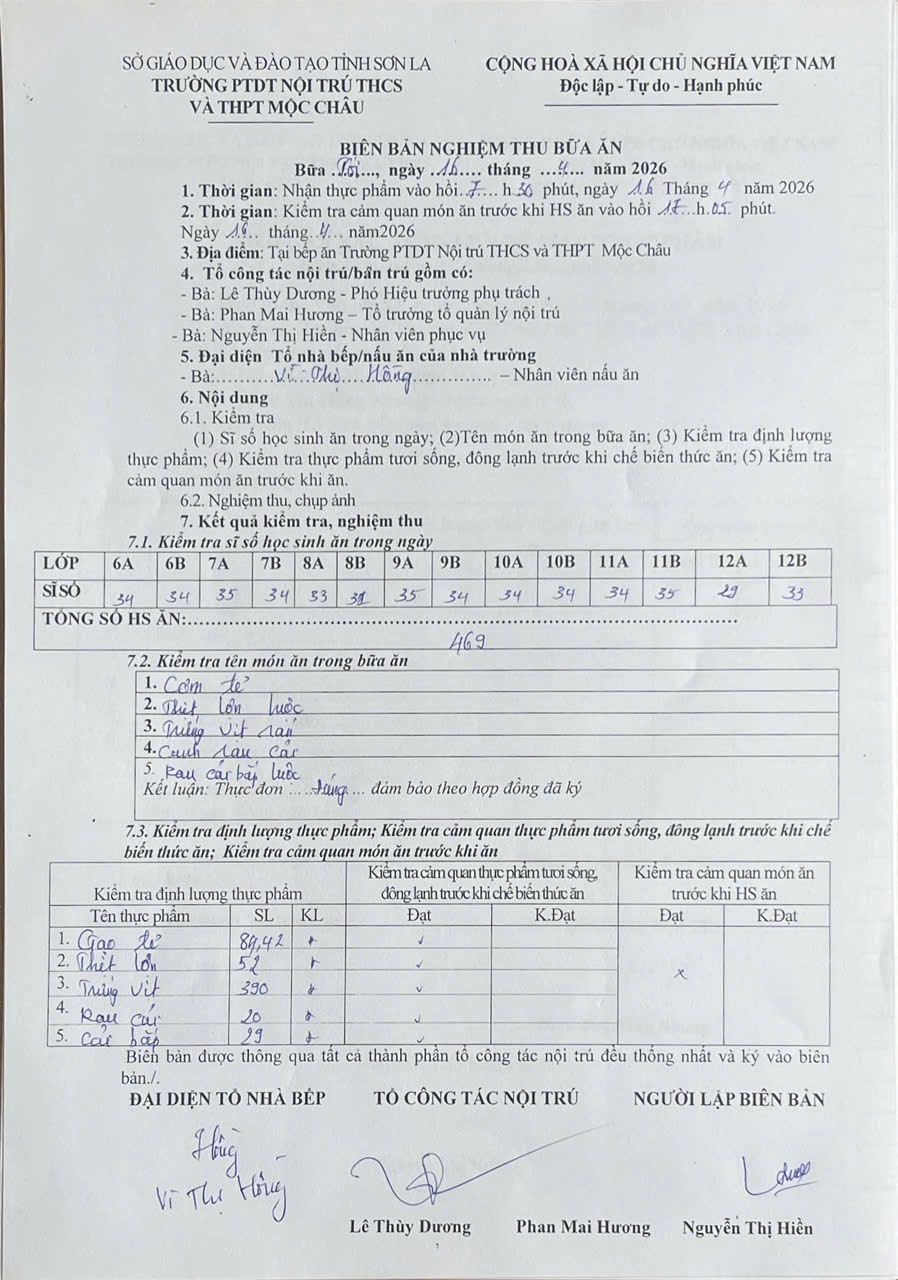 Hình ảnh và biên bản bữa sáng,trưa ngày 16/04/2026