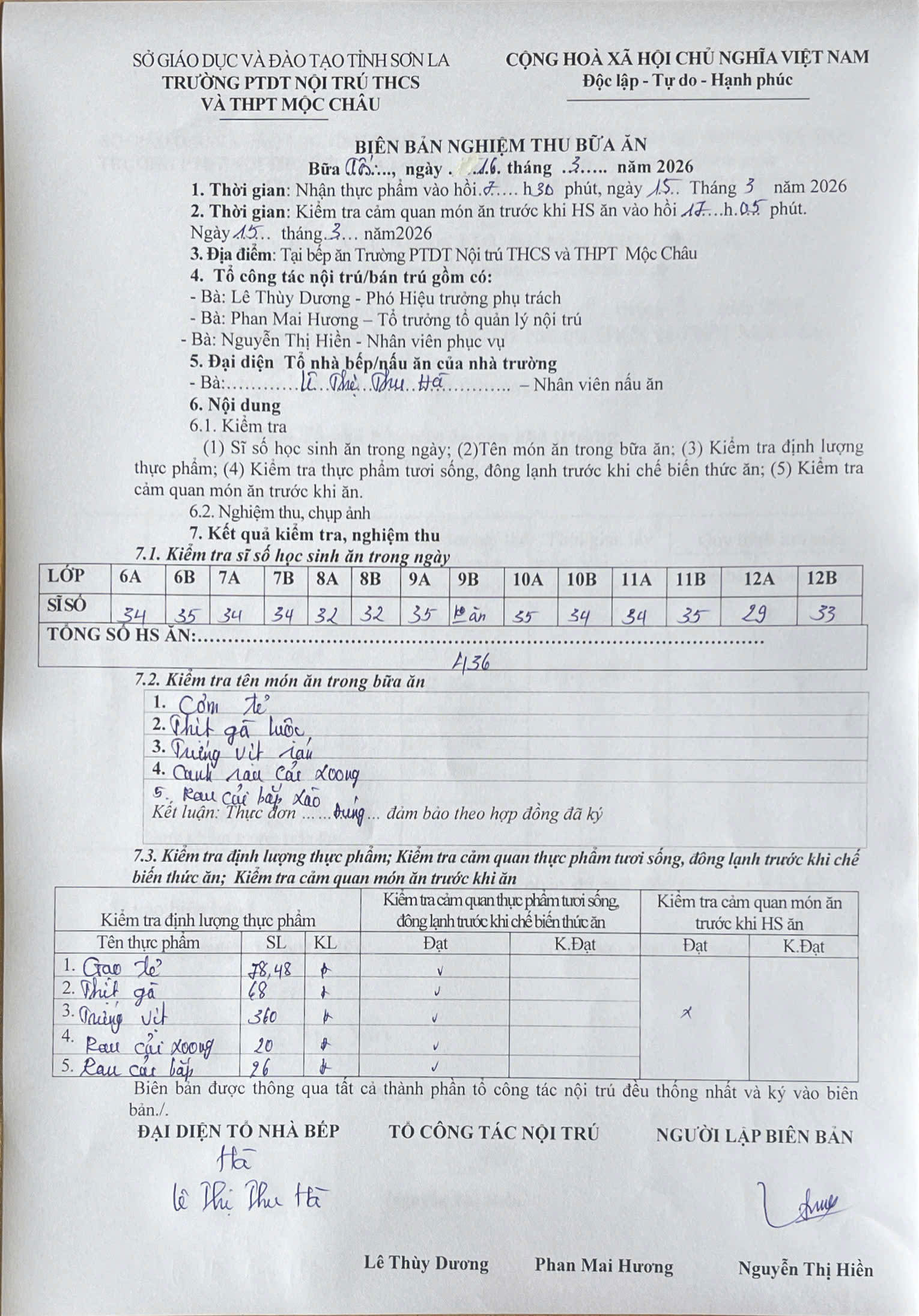 Hình ảnh và biên bản bữa sáng,trưa ngày 16/3/2026