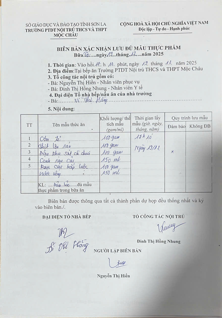 Hình ảnh và biên bản bữa sáng,trưa ngày 20/12/2025
