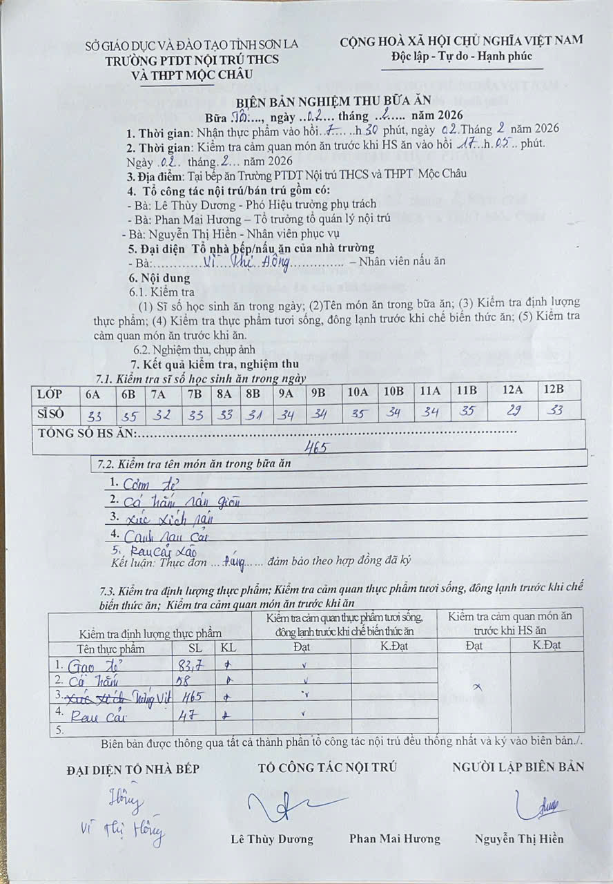 Hình ảnh và biên bản bữa sáng,trưa ngày 2/2/2026