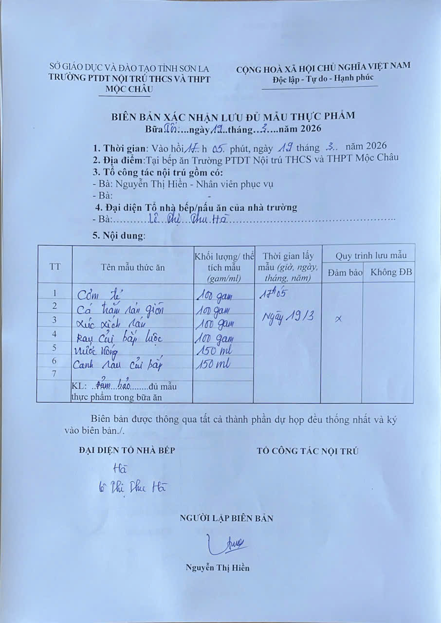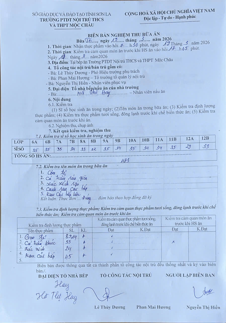 Hình ảnh và biên bản bữa sáng,trưa ngày 19/03/2026