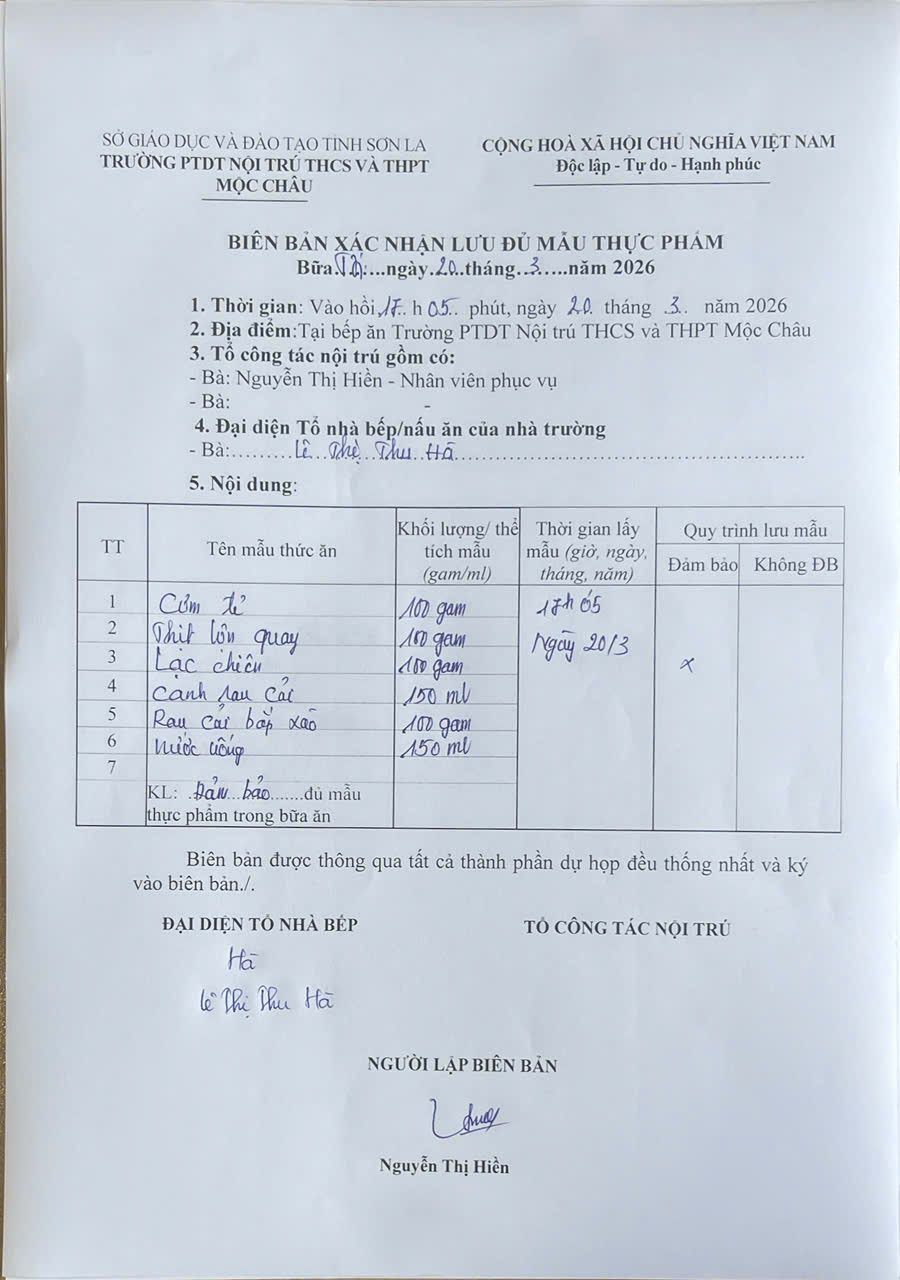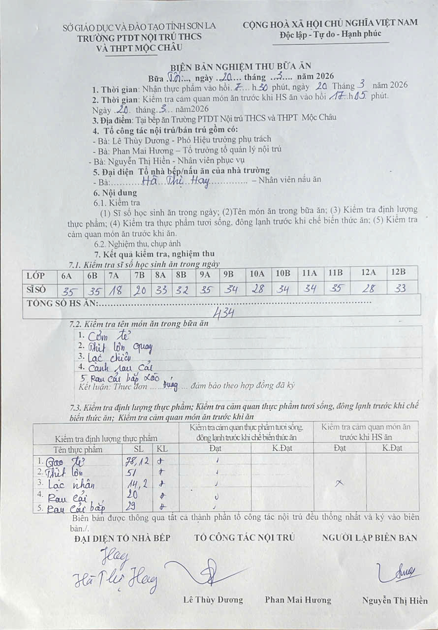 Hình ảnh và biên bản bữa sáng,trưa ngày 20/3/2026