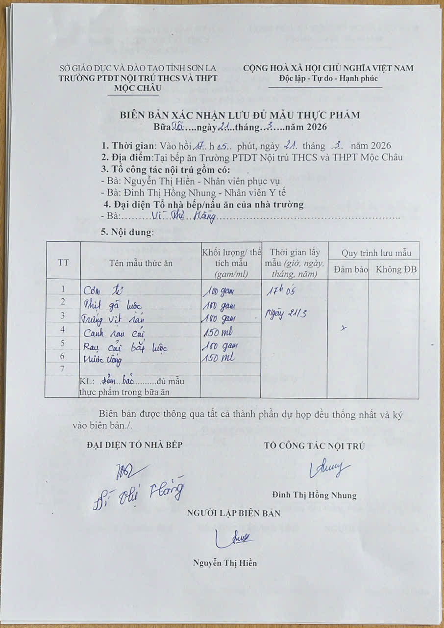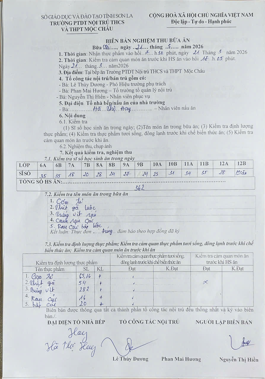 Hình ảnh và biên bản bữa sáng,trưa ngày 21/3/2026