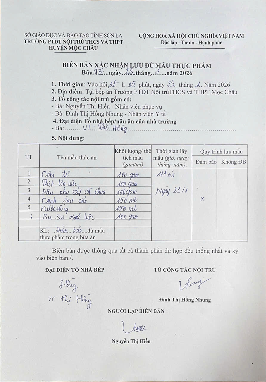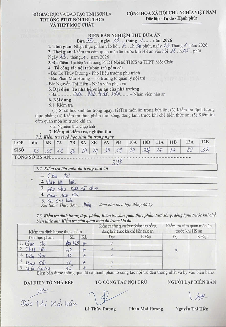Hình ảnh và biên bản bữa sáng.trưa ngày 23/1/2026