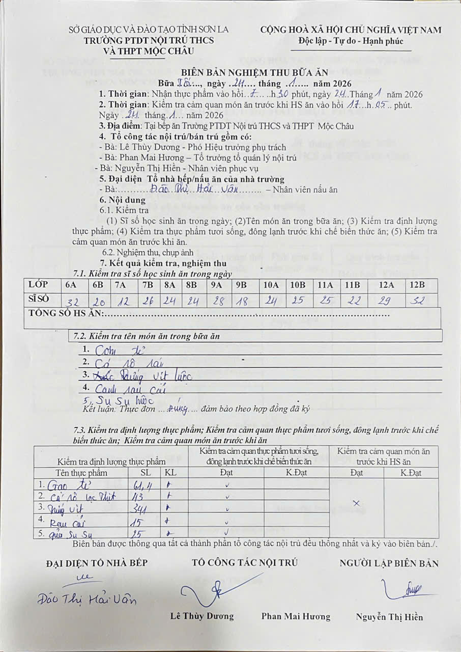 Hình ảnh và biên bản bữa sáng,trưa ngày 24/1/2025