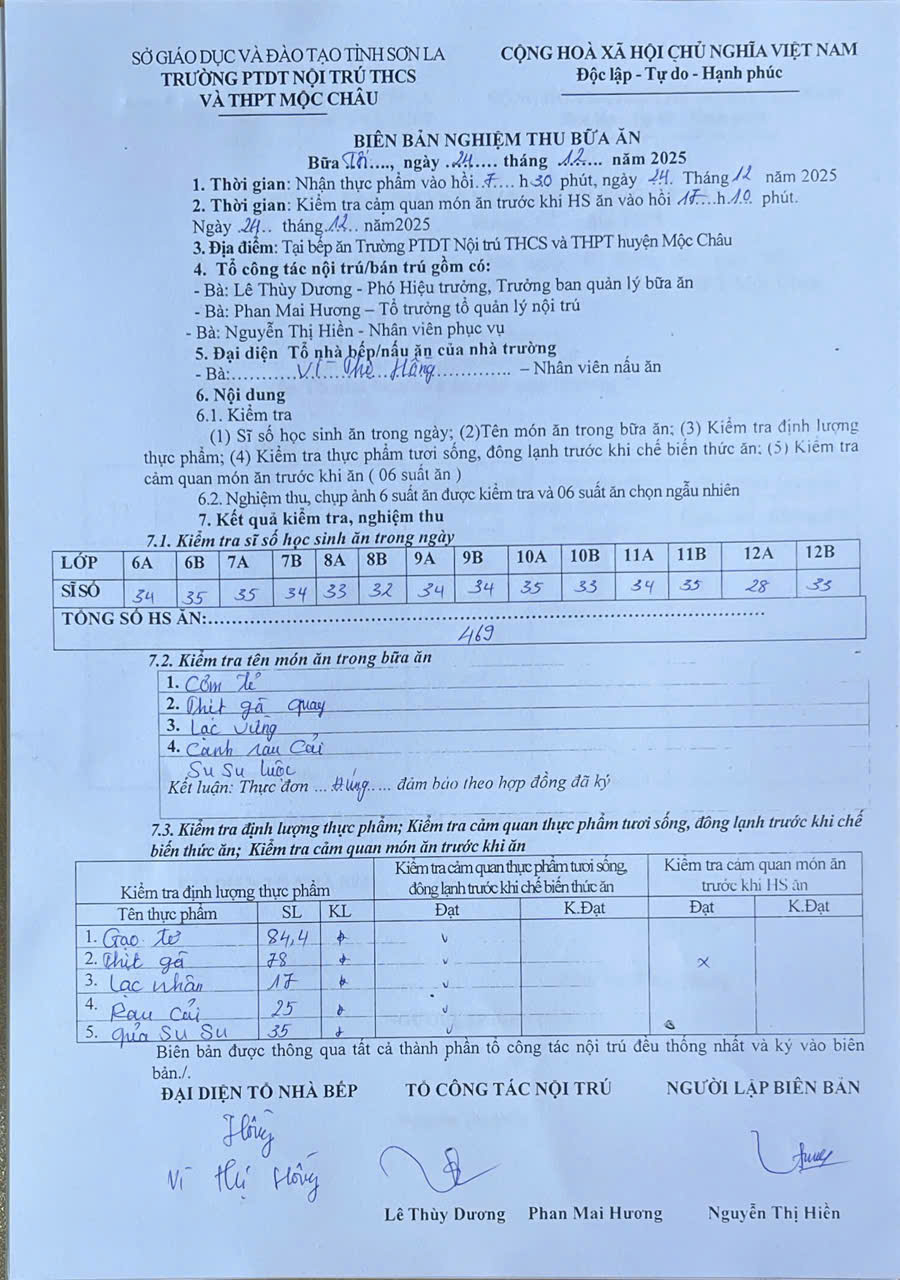 Hình ảnh và biên bản bữa sáng,trưa ngày 24/12/2025