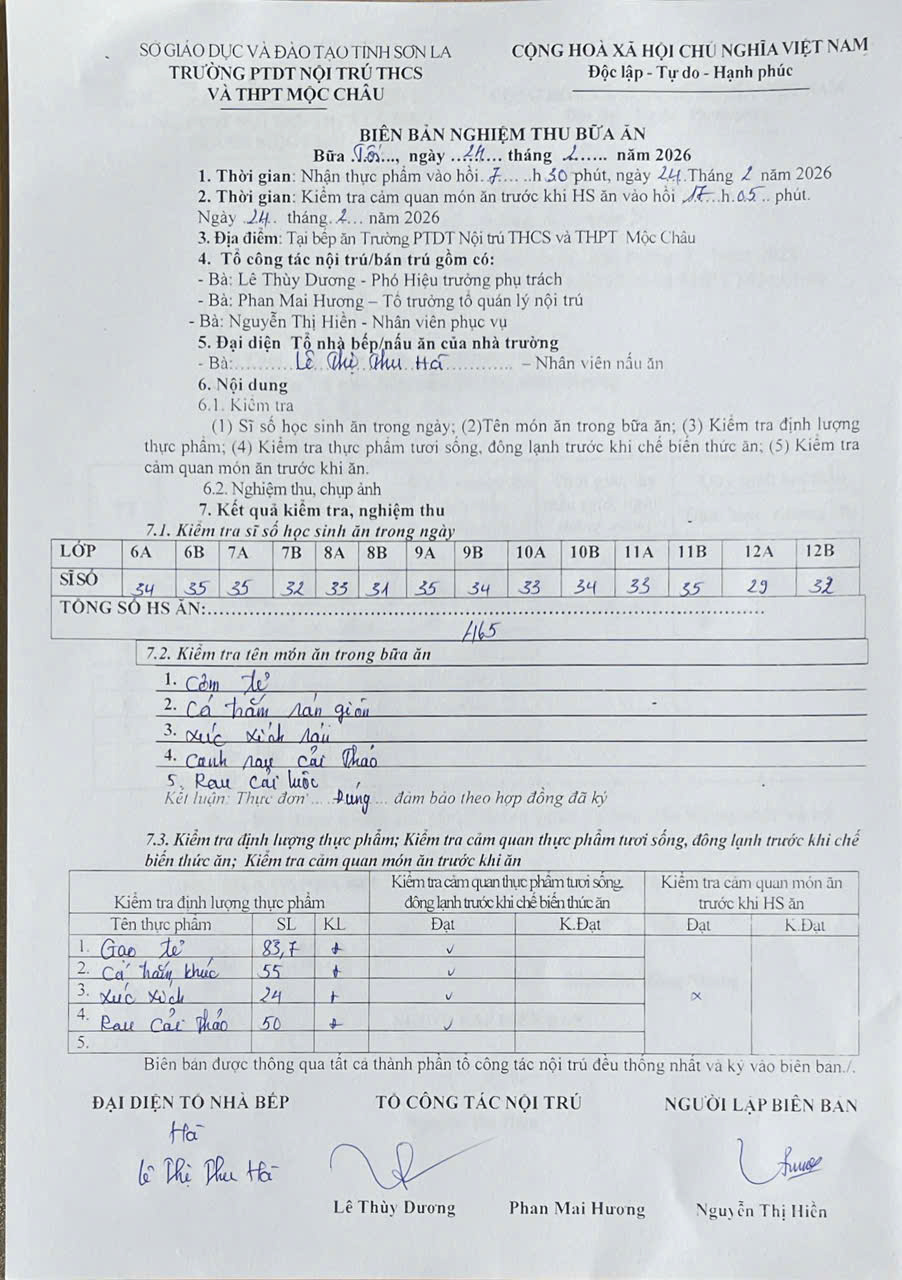 Hình ảnh và biên bản bữa sáng,trưa ngày 24/2/2026