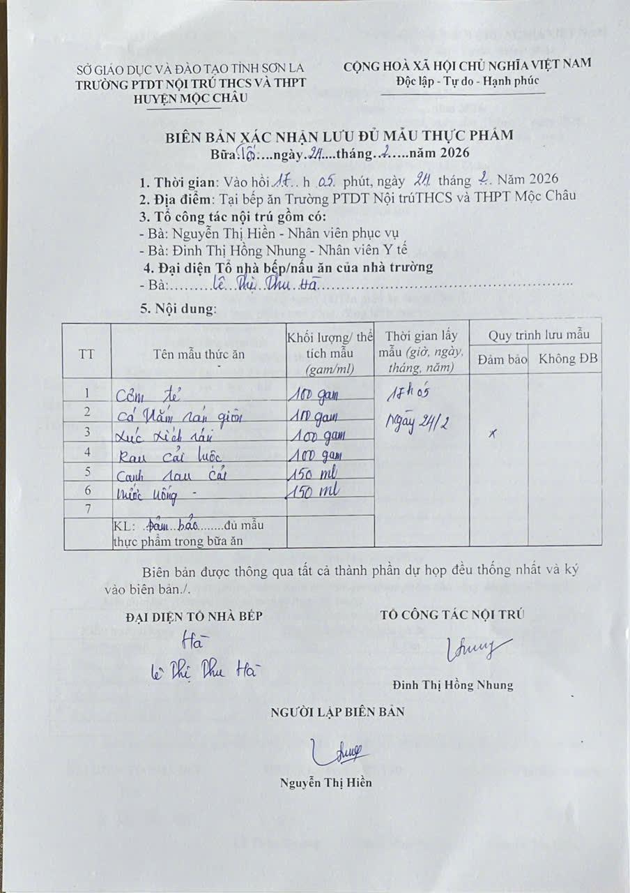 Hình ảnh và biên bản bữa sáng,trưa ngày 26/2/2026