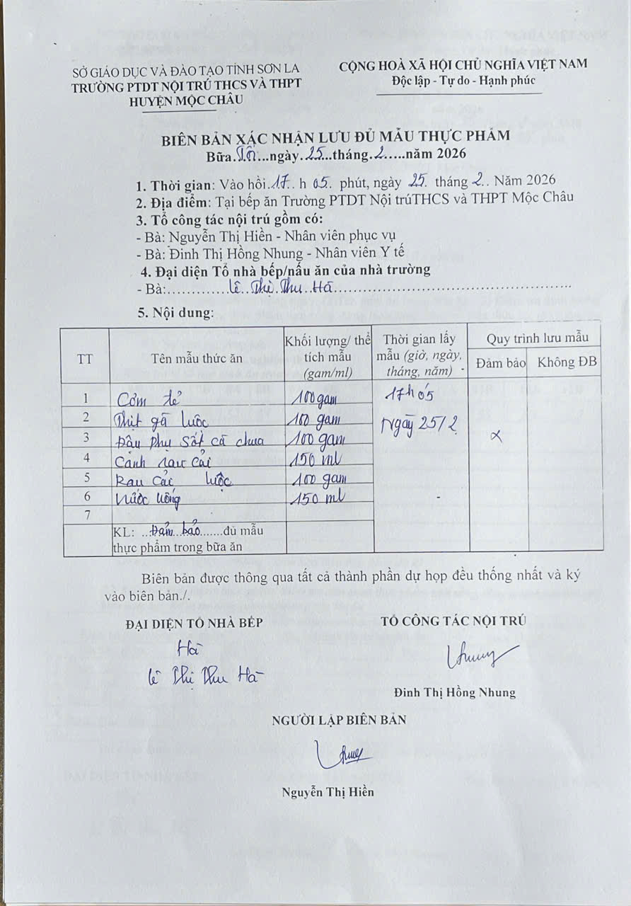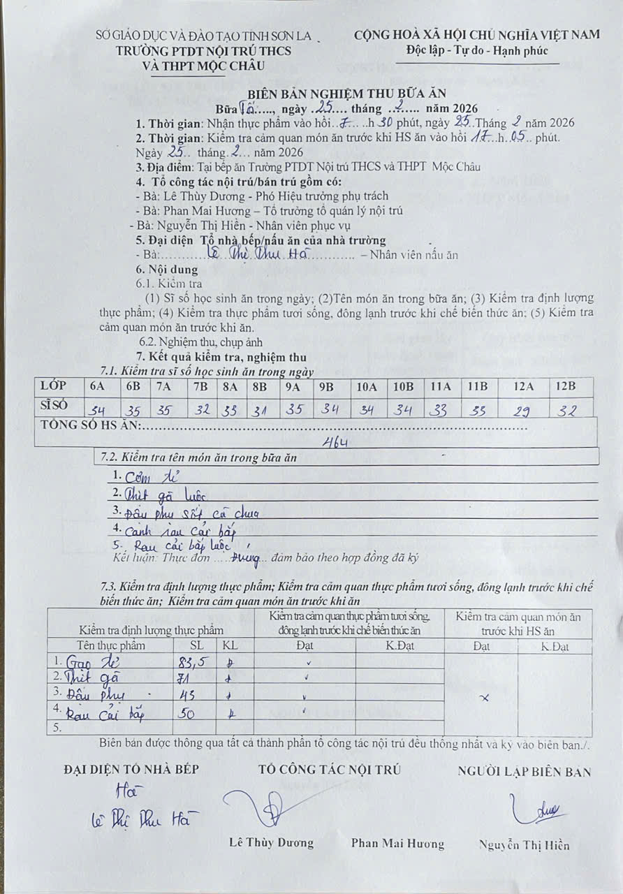 Hình ảnh và biên bản bữa sáng,trưa ngày 25/02/2026