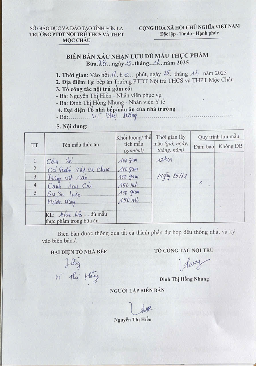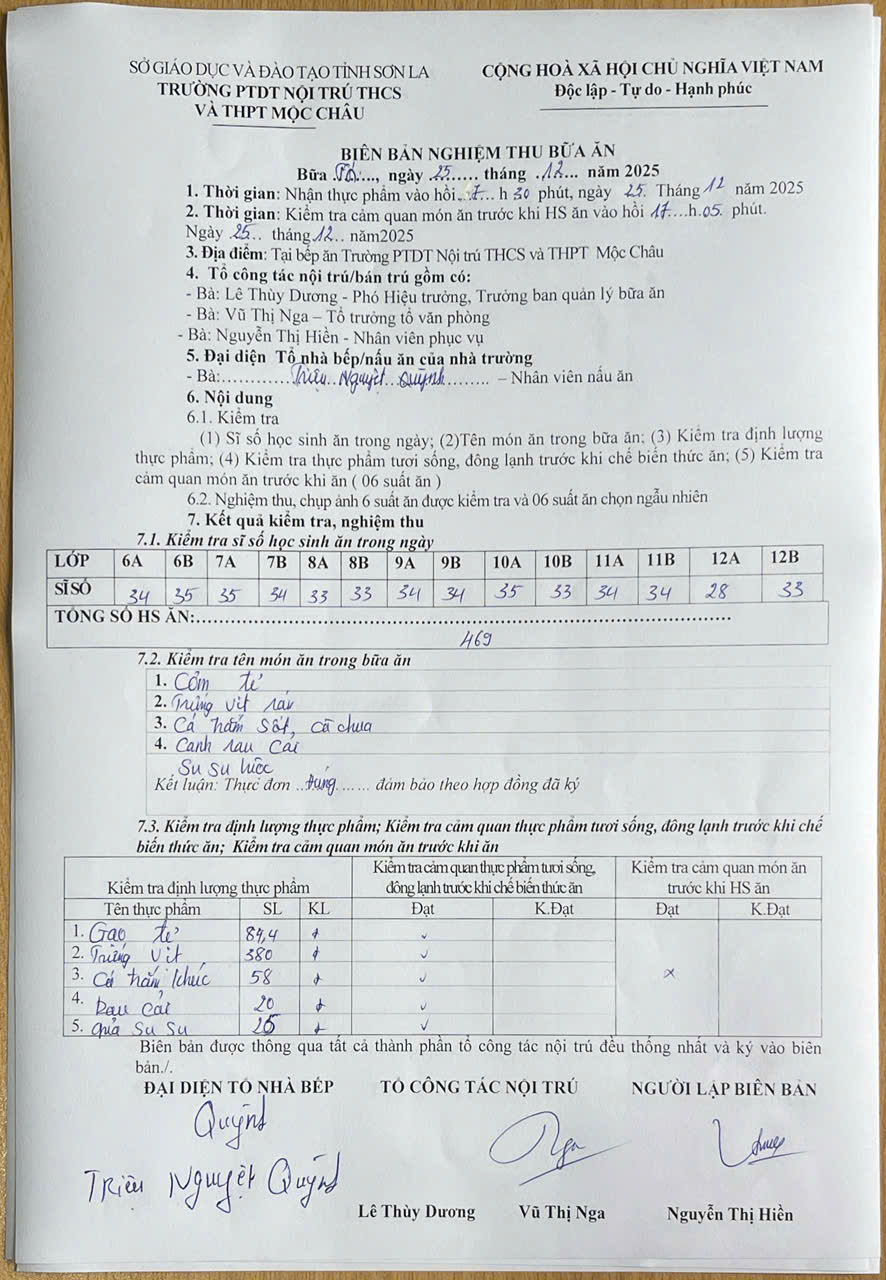 Hình ảnh và biên bản bữa sáng,trưa ngày 25/12/2025