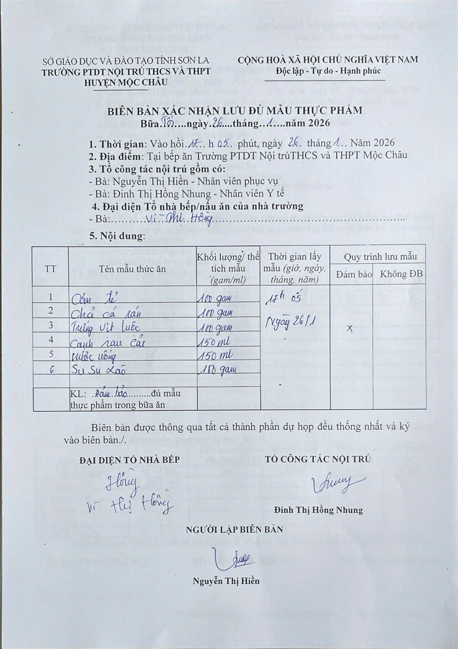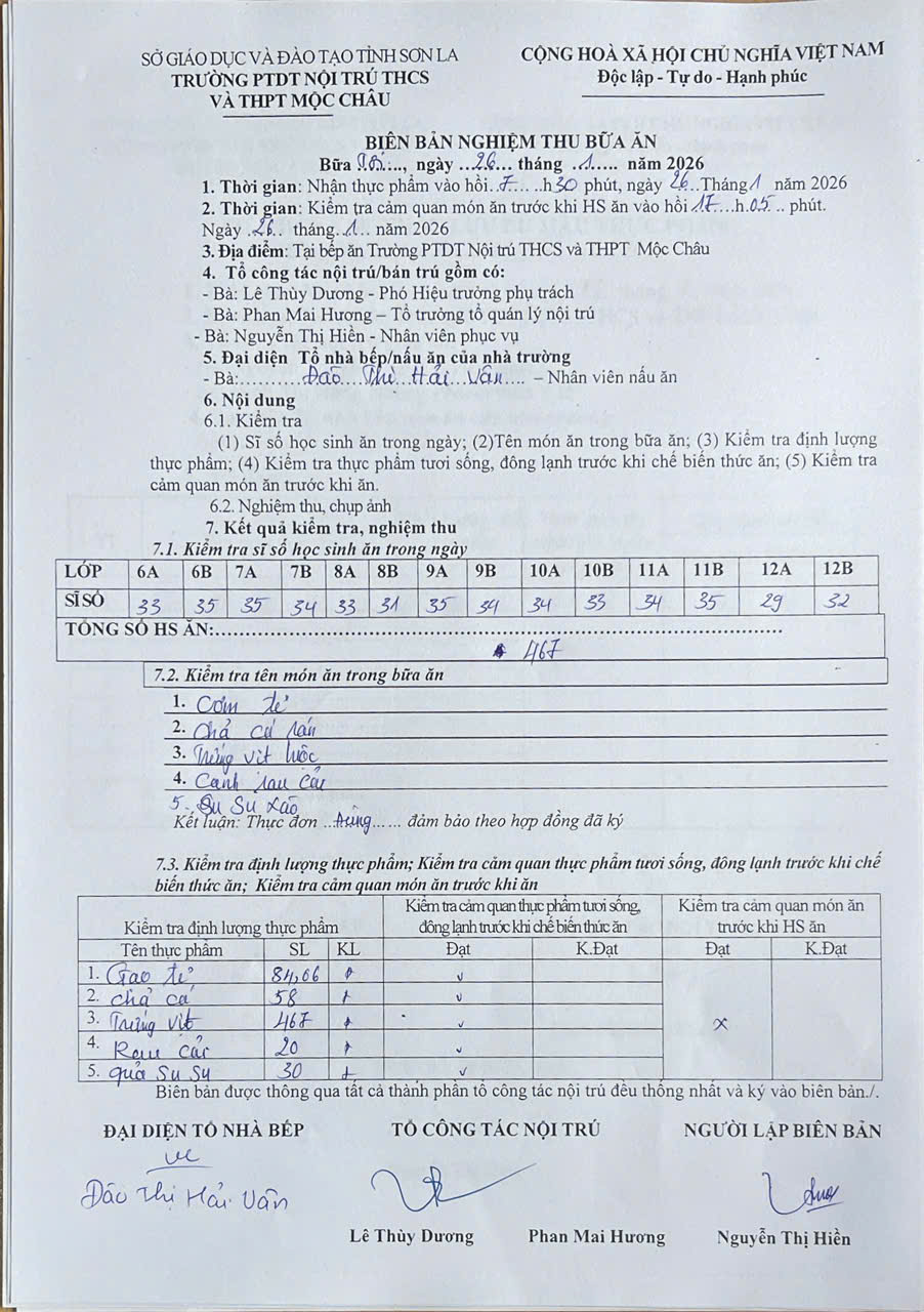 Hình ảnh và biên bản bữa sáng,trưa ngày 26/1/2026
