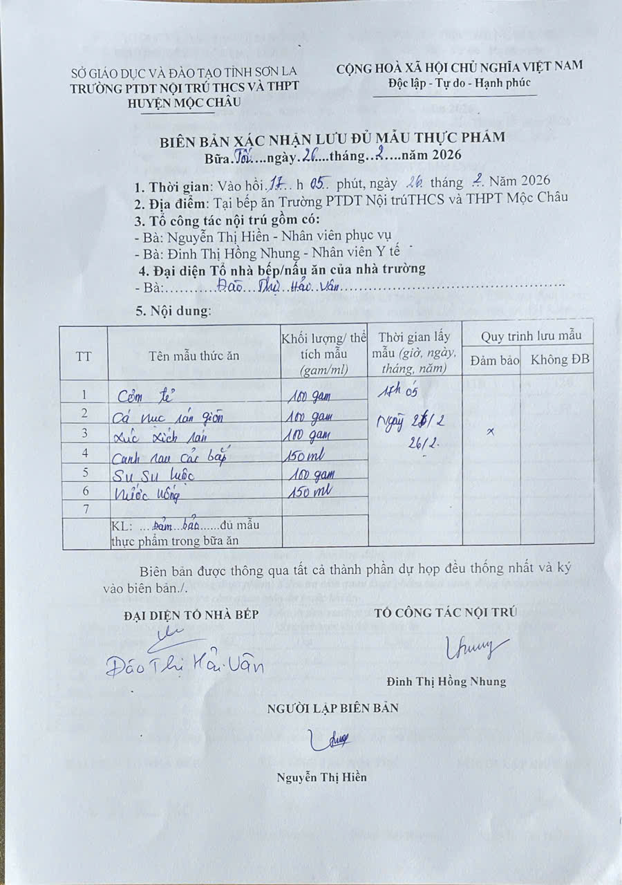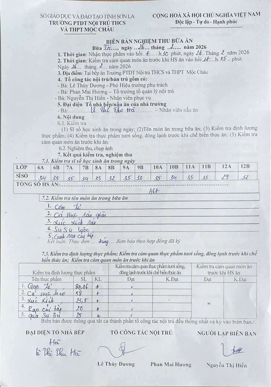 Hình ảnh và biên bản bữa sáng,trưa ngày 26/2/2026