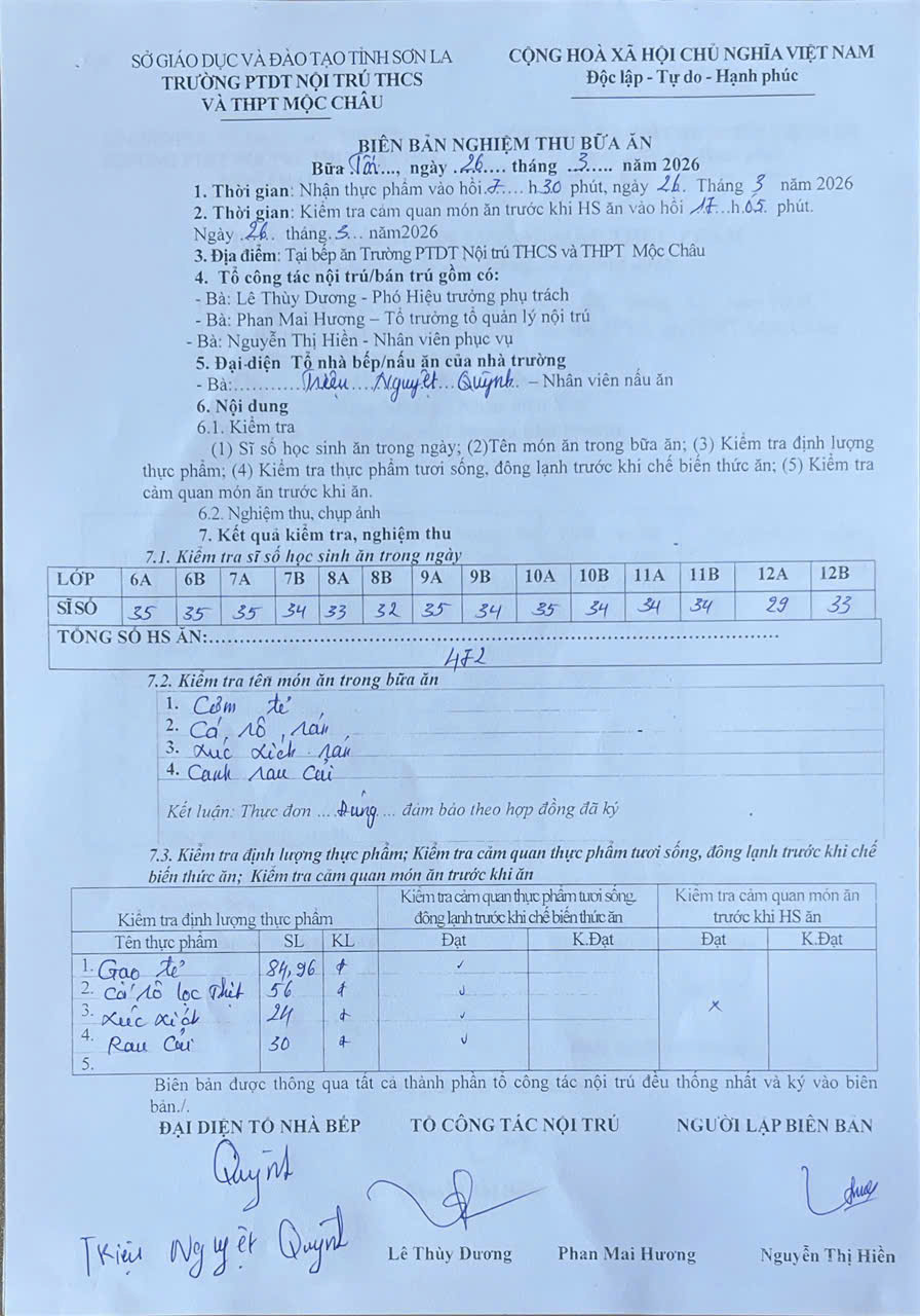Hình ảnh và biên bản bữa sáng,trưa ngày 27/3/2026