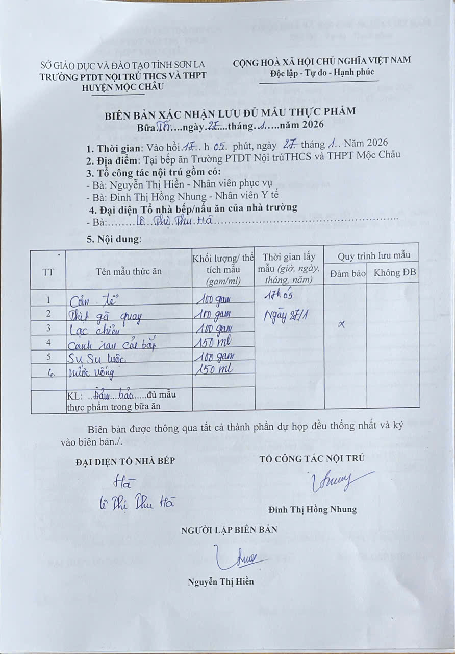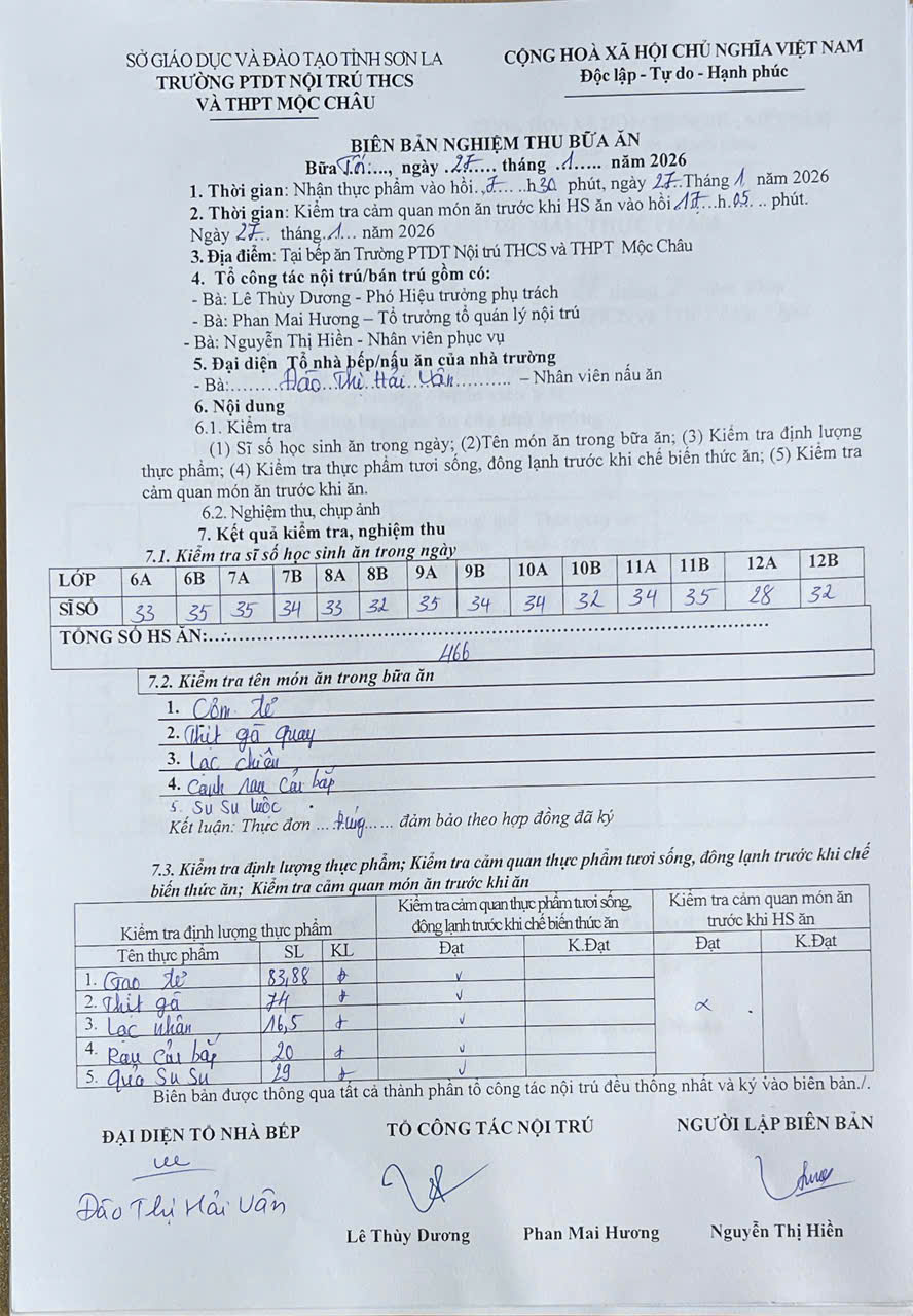 Hình ảnh và biên bản bữa sáng,trưa ngày 27/1/2026
