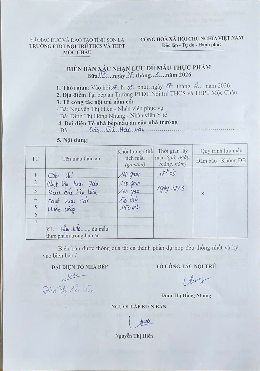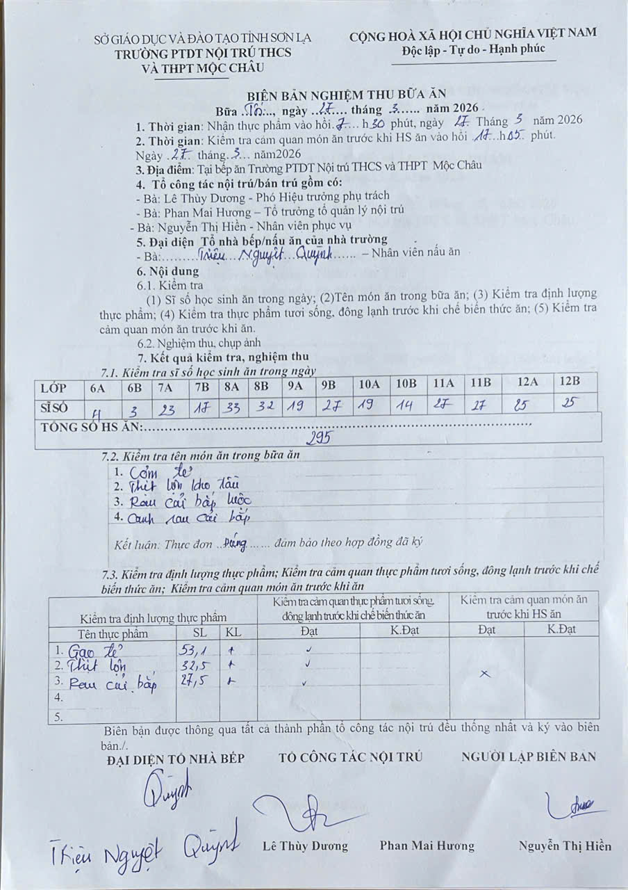 Hình ảnh và biên bản bữa sáng ,trưa ngày 12/3/2026