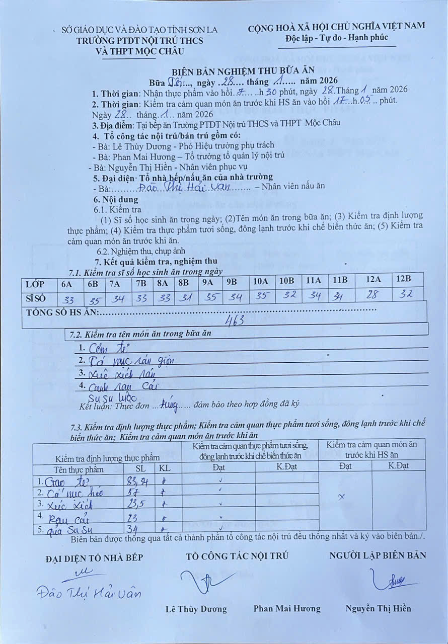 Hình ảnh và biên bản bưa sáng,trưa ngày 29/1/2026