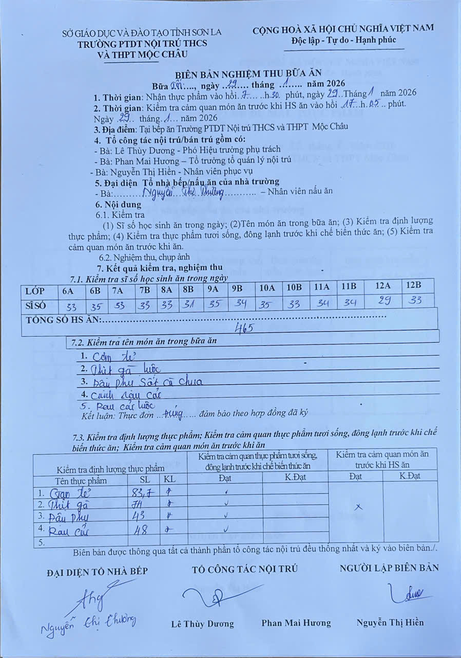 Hình ảnh và biên bản bữa sáng,trưa ngày 30/1/2026