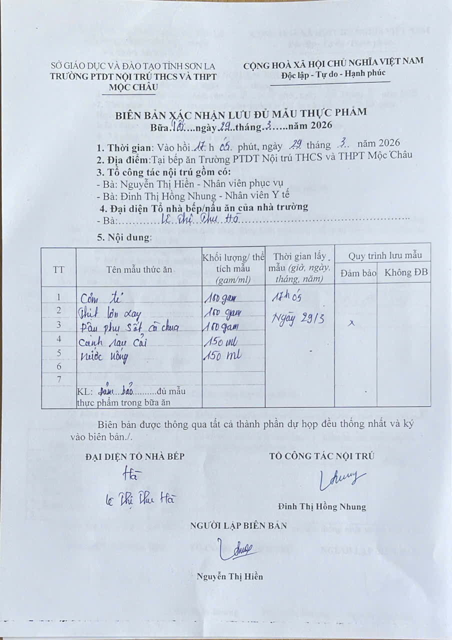 Hình ảnh và biên bản bữa sáng,trưa ngày 30/3/2026