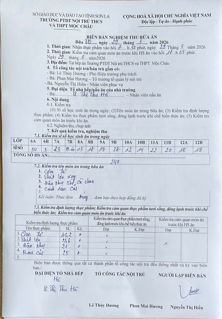 Hình ảnh và biên bản bữa sáng,trưa ngày 29/3/2026