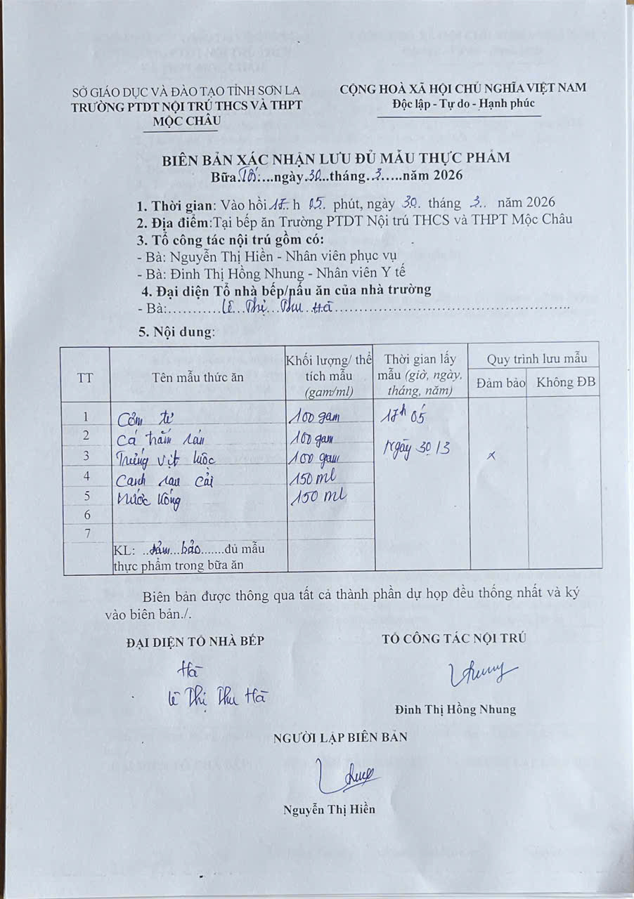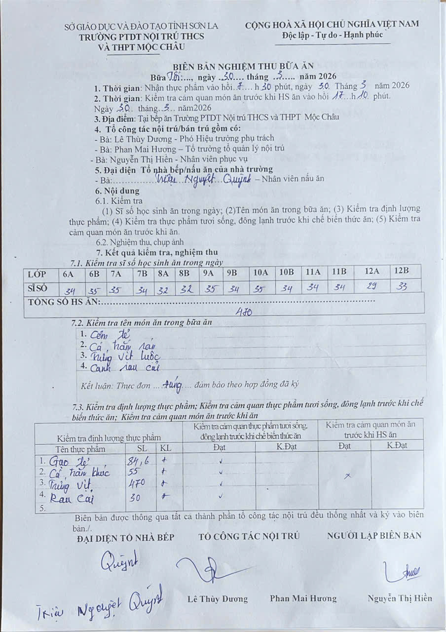 Hình ảnh và biên bản bữa sáng,trưa ngày 30/3/2026