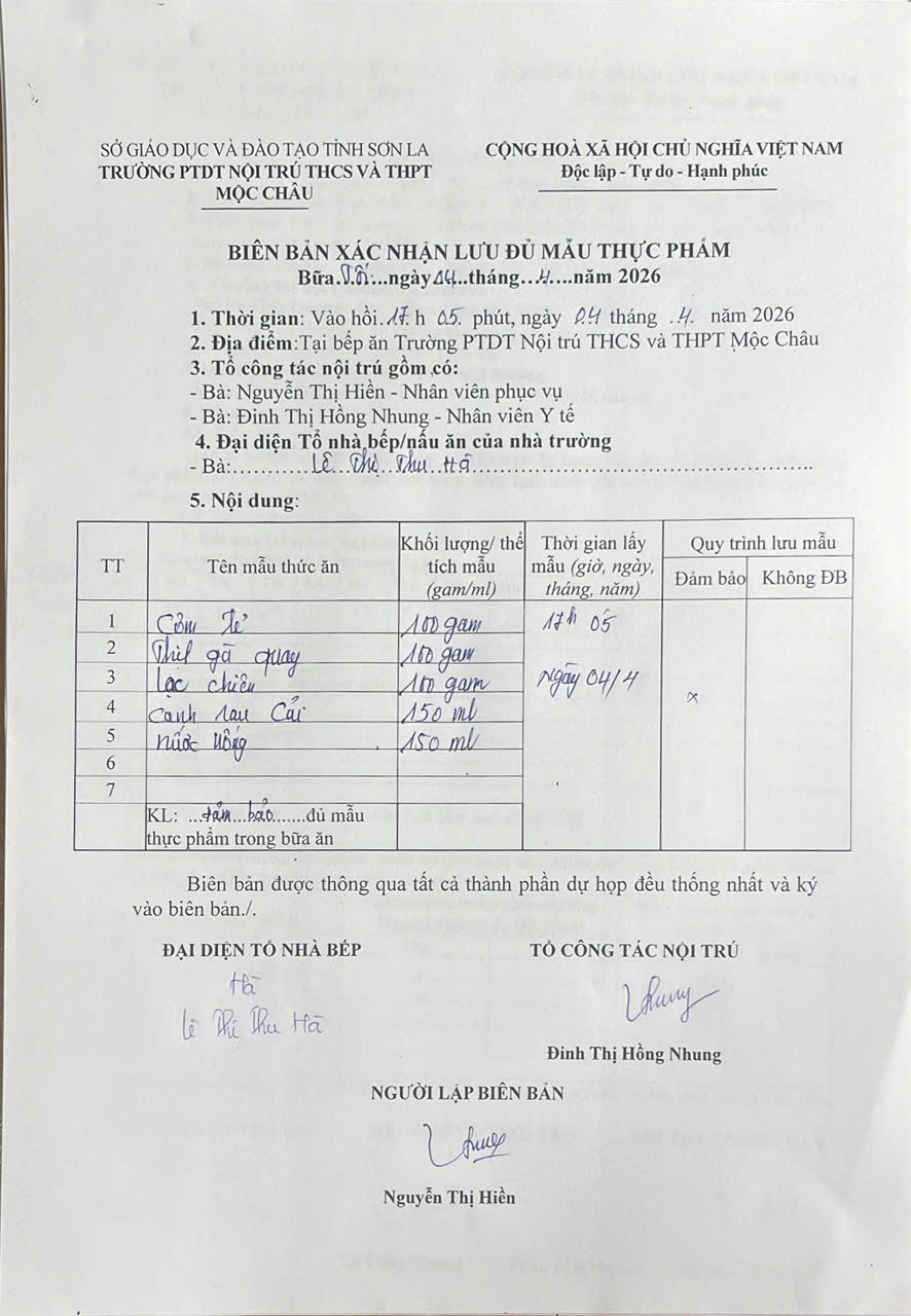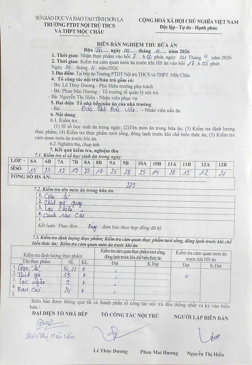 Hình ảnh và biên bản bữa sáng,trưa ngày 4/4/2026
