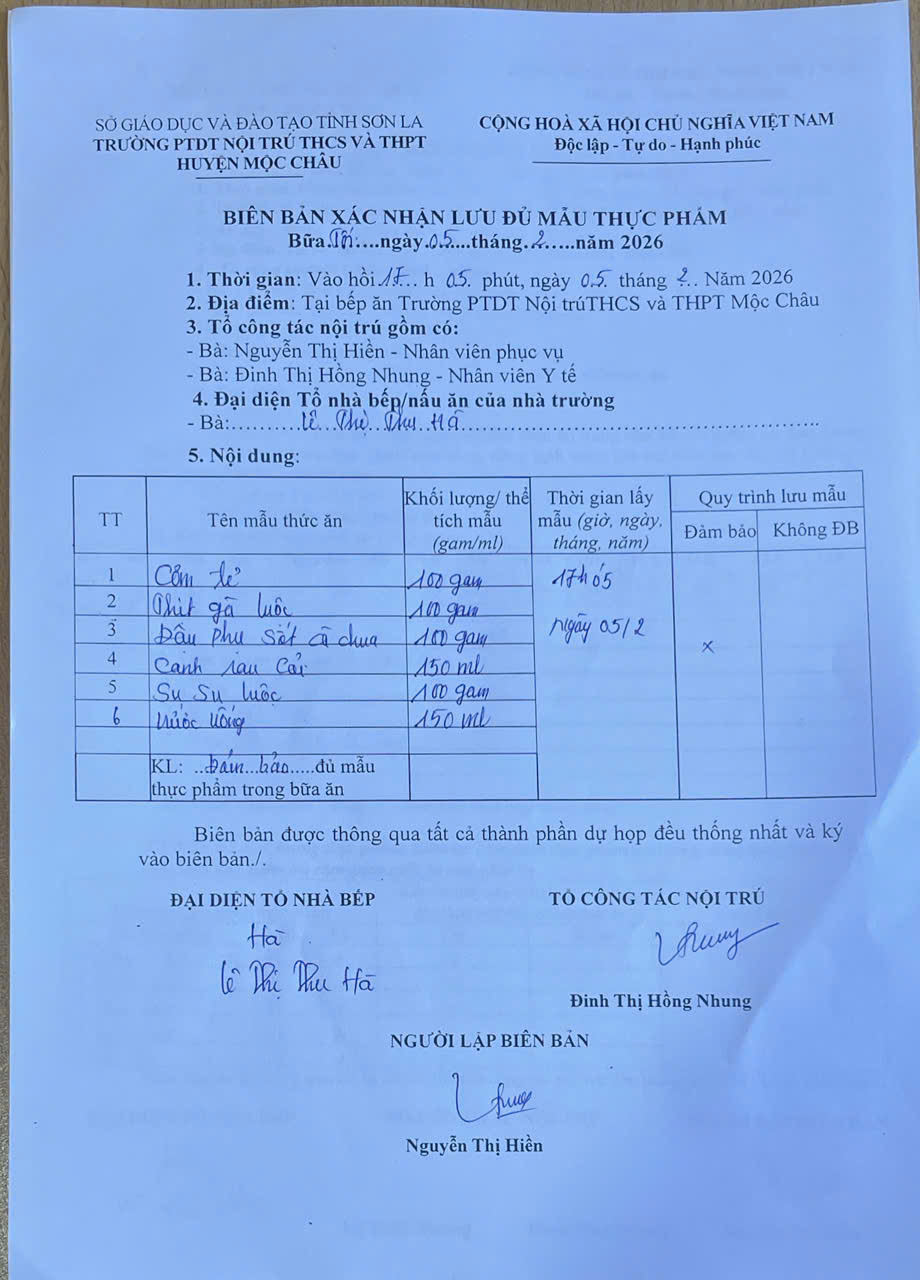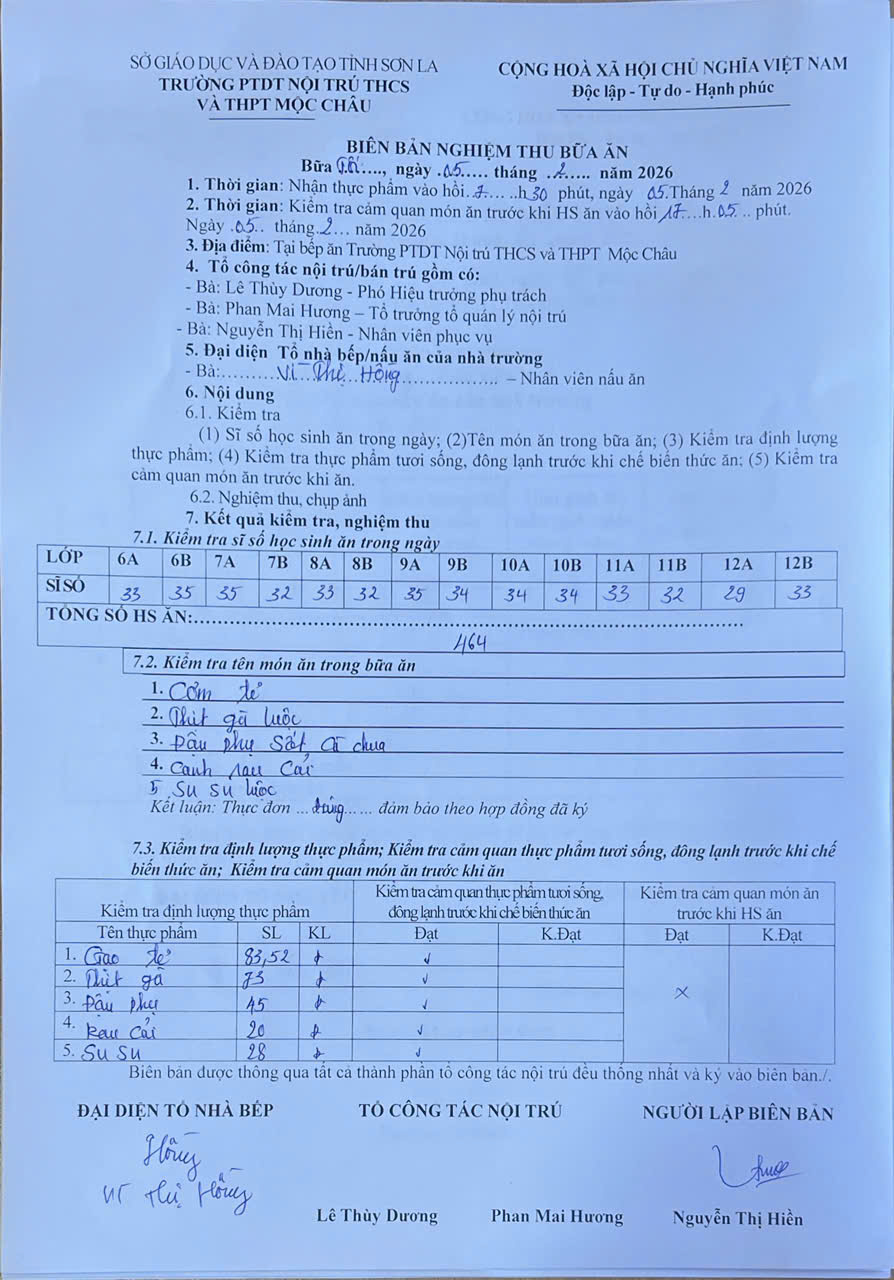 Hình ảnh và biên bản bữa sáng,trưa ngày 5/1/2026