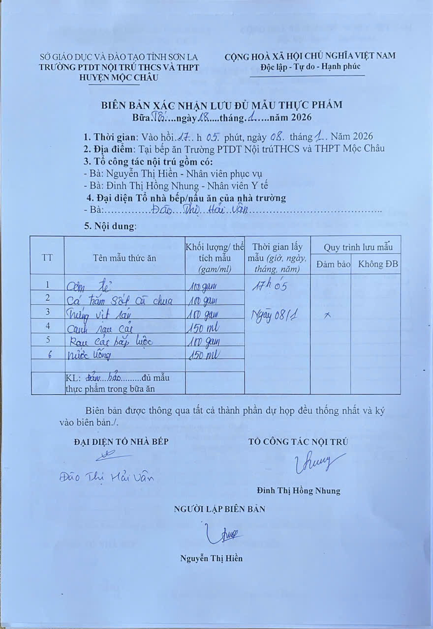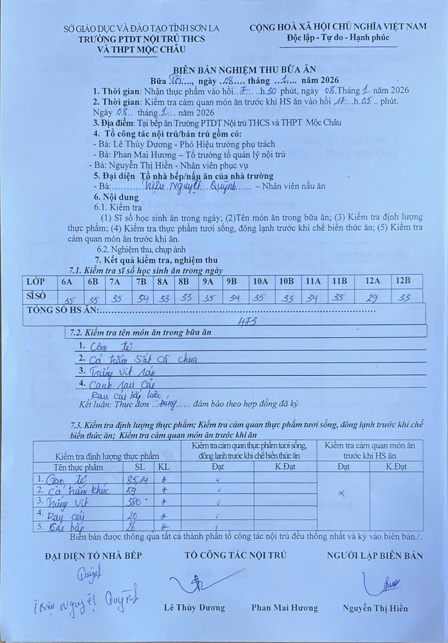 Hình ảnh và biên bản bữa sáng,trưa ngày 8/1/2026