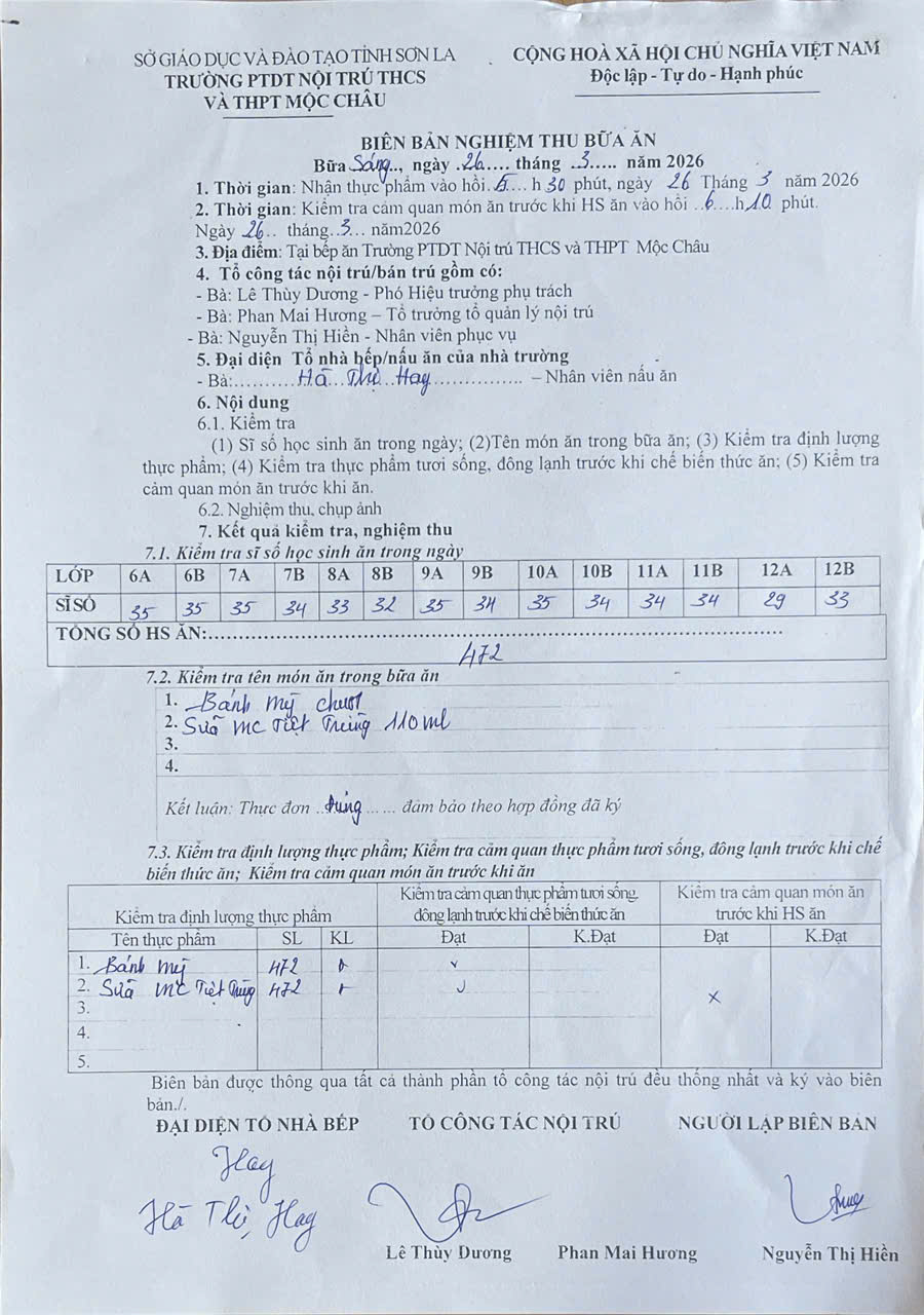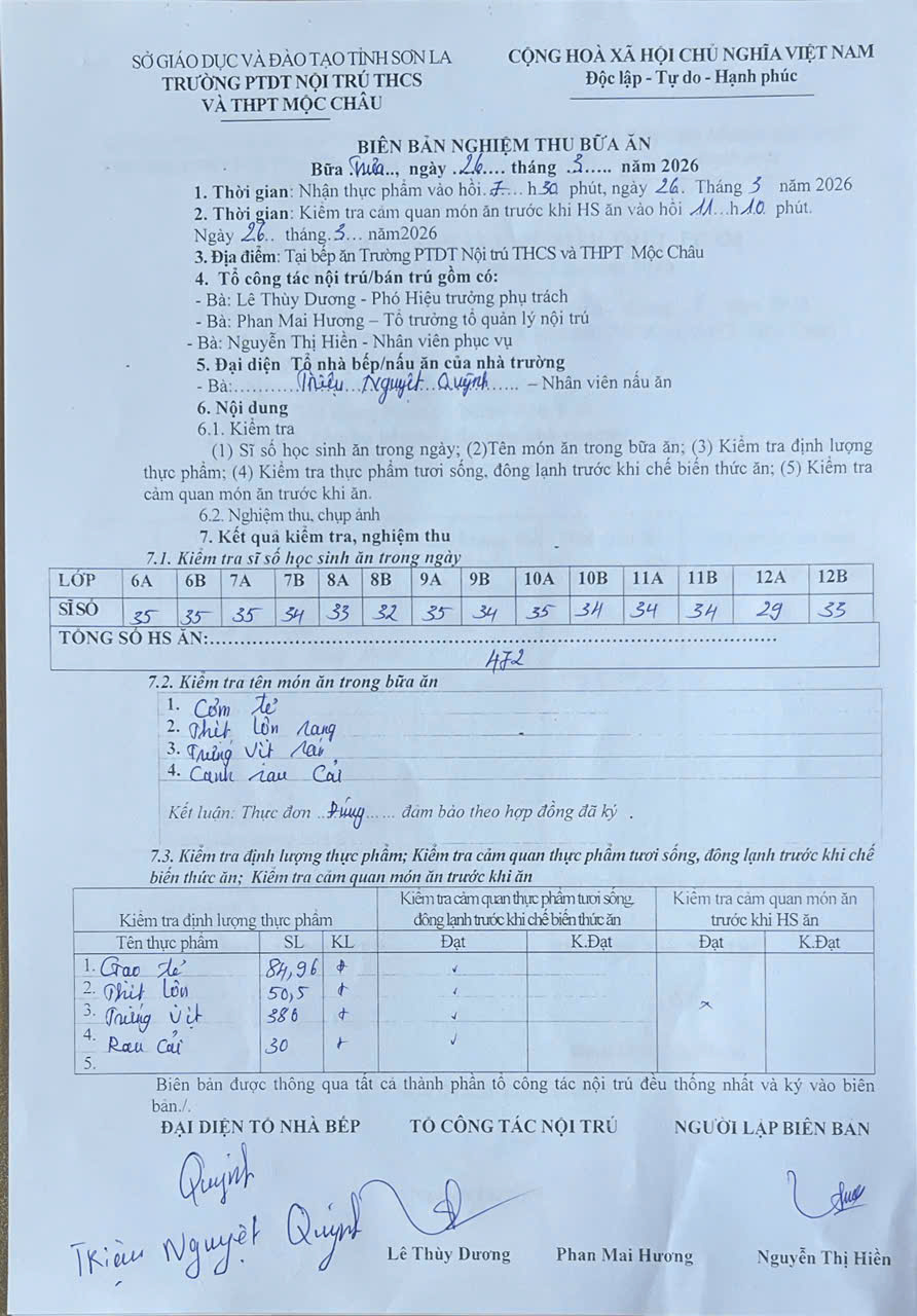 Hình ảnh và biên bản bữa sáng, trưa ngày 26/3/2026