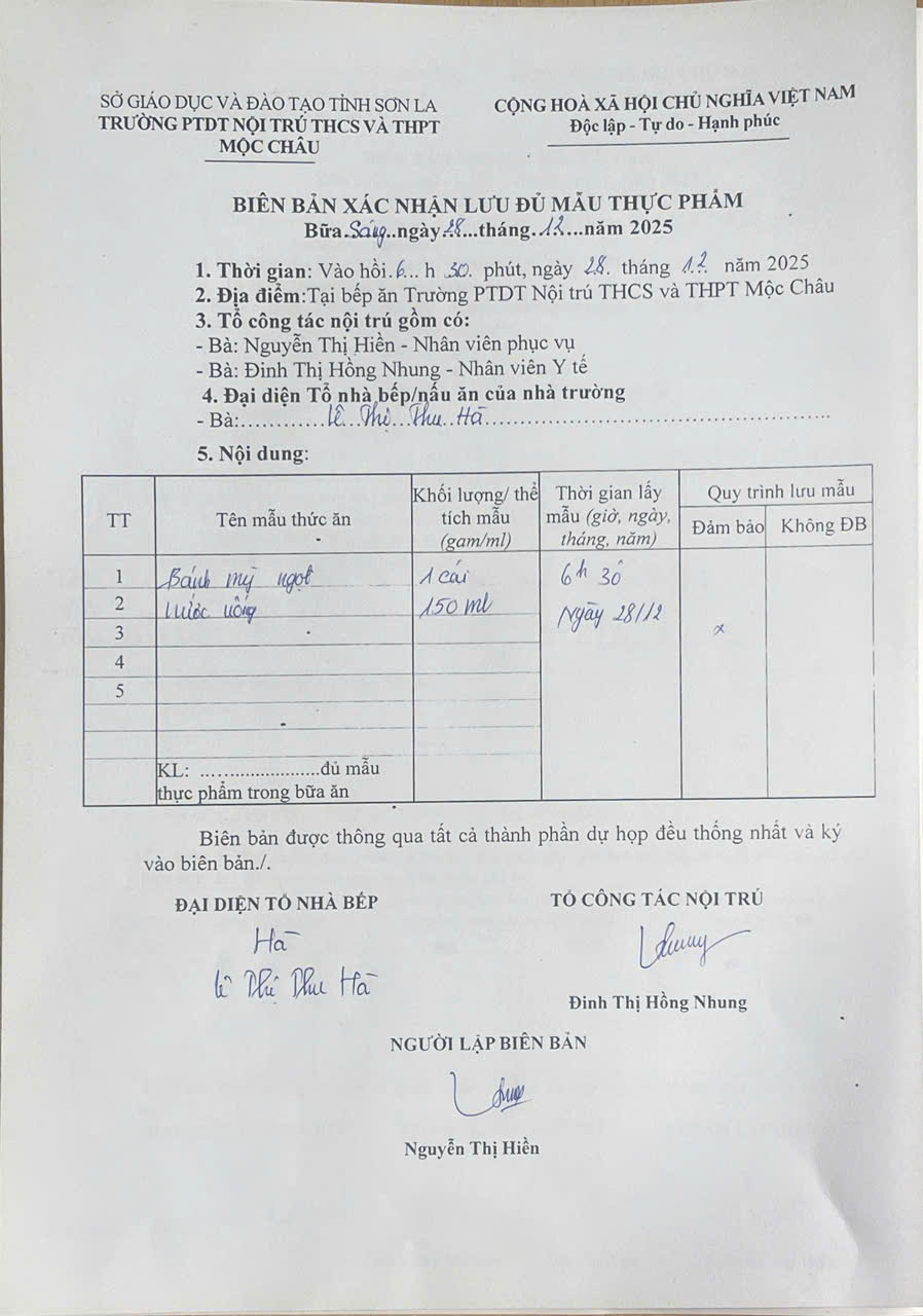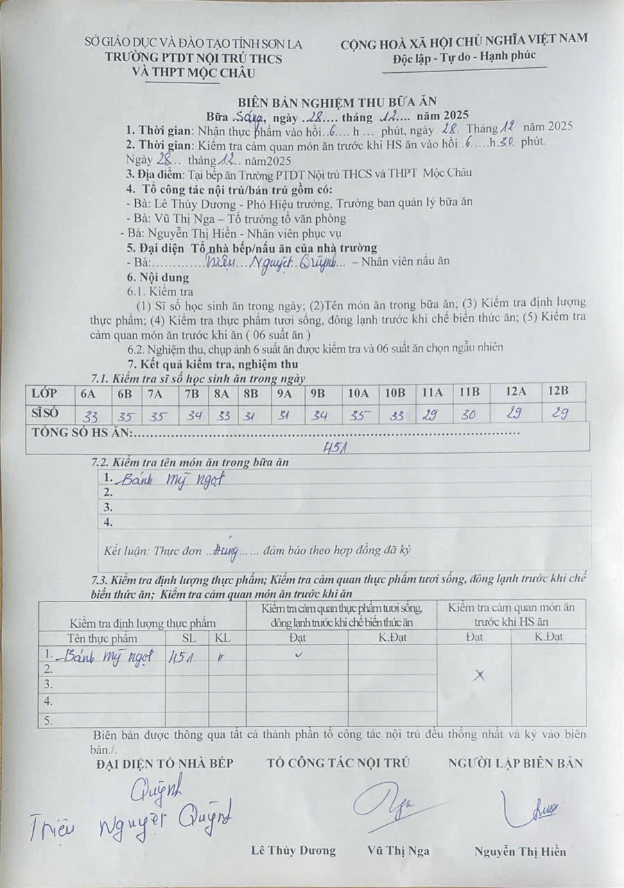 Hình ảnh và biên bản bữa ăn sáng,trưa ngày 16/12/2025