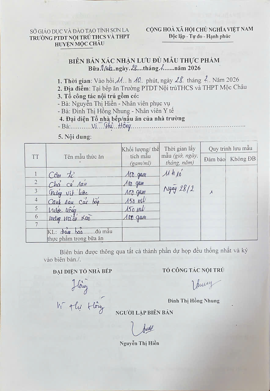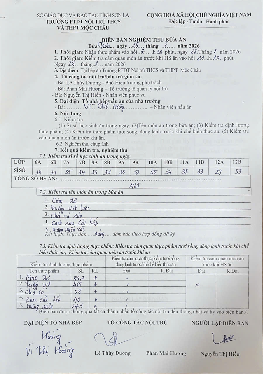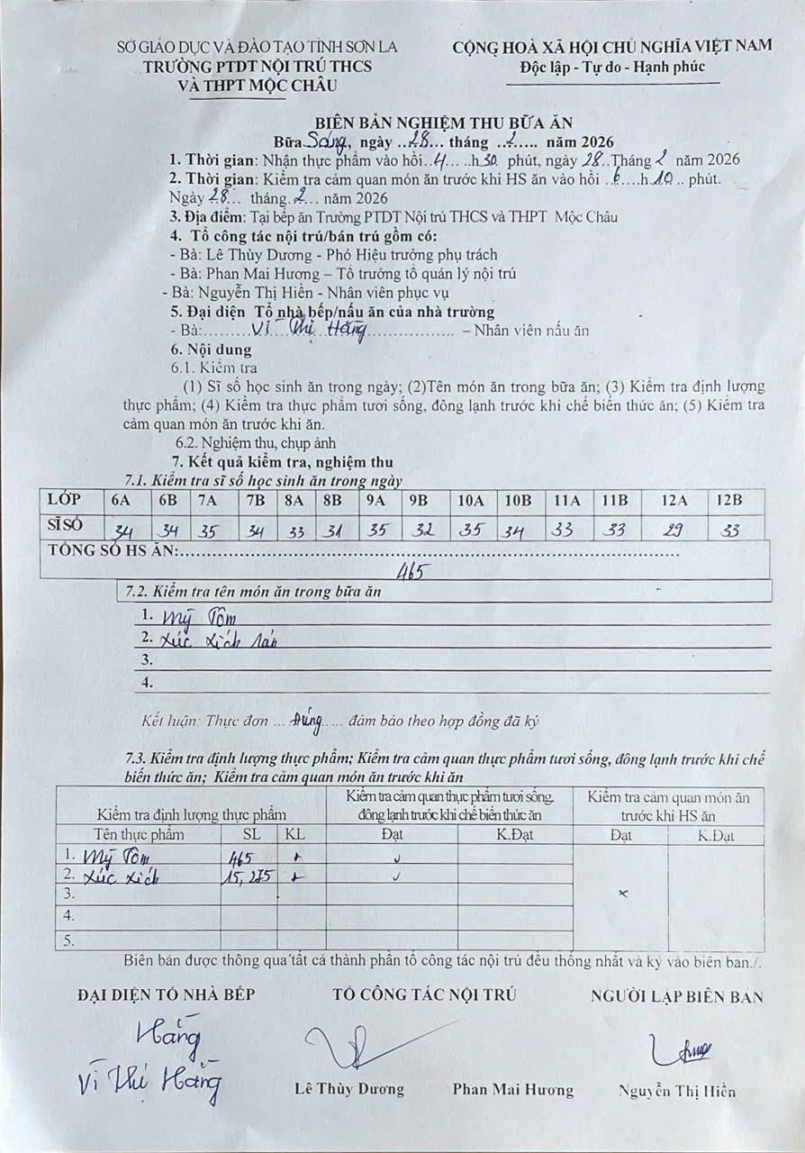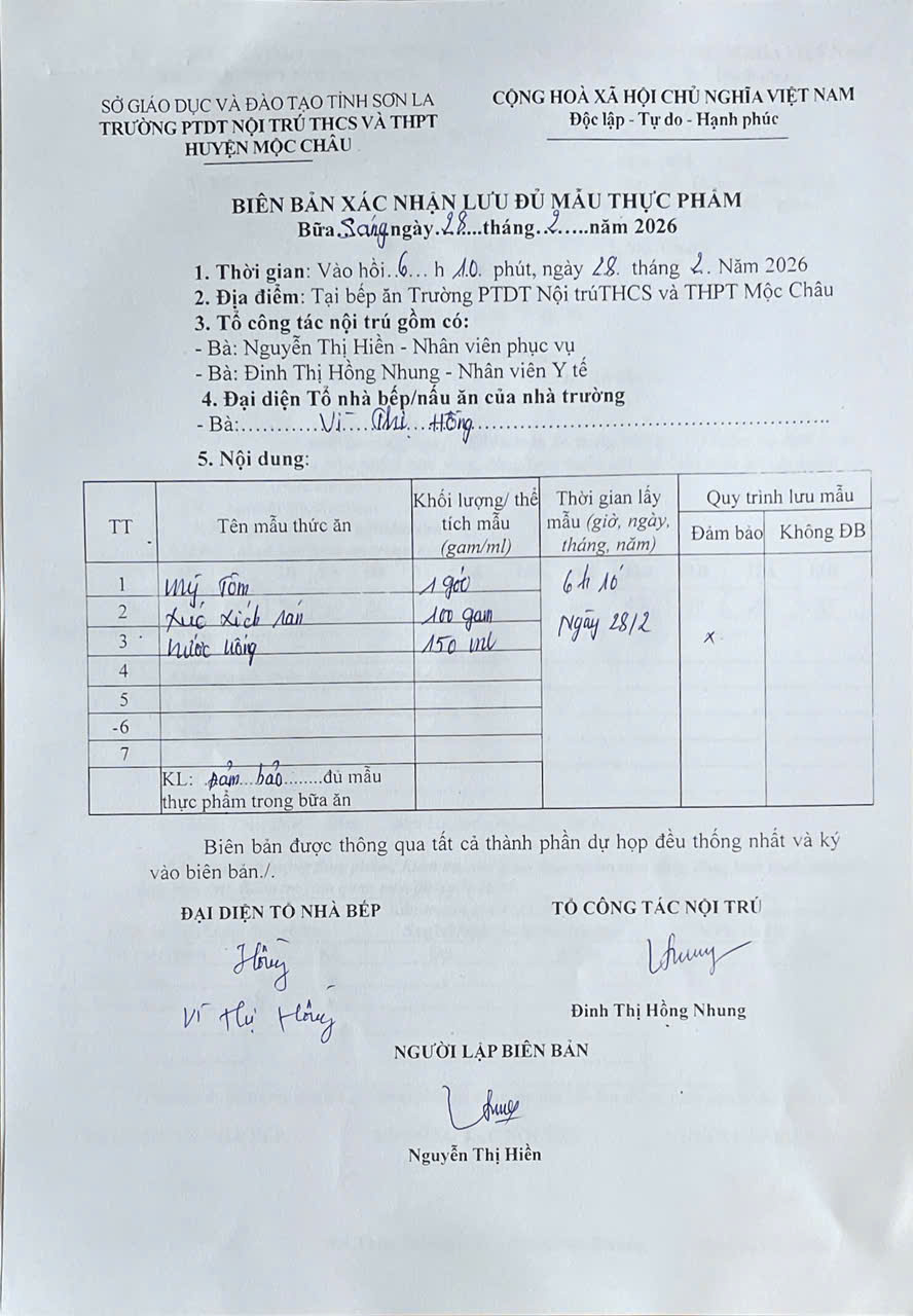 Hình ảnh và biên bản bữa sáng,trưa ngày 28/2/2026