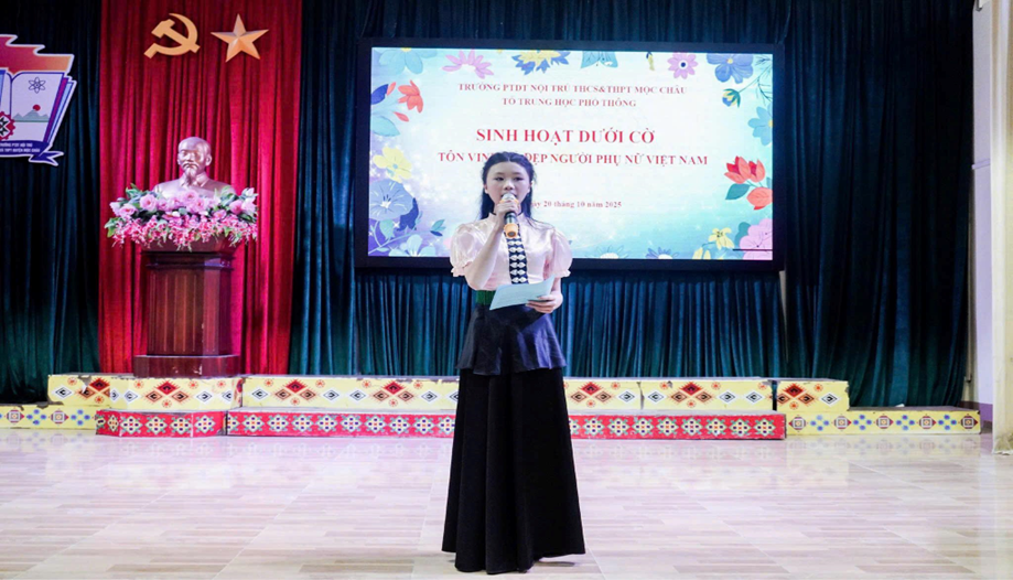 Sinh hoạt dưới cờ – Tôn vinh vẻ đẹp người phụ nữ Việt Nam của Trường PTDTNT THCS và THPT Mộc Châu