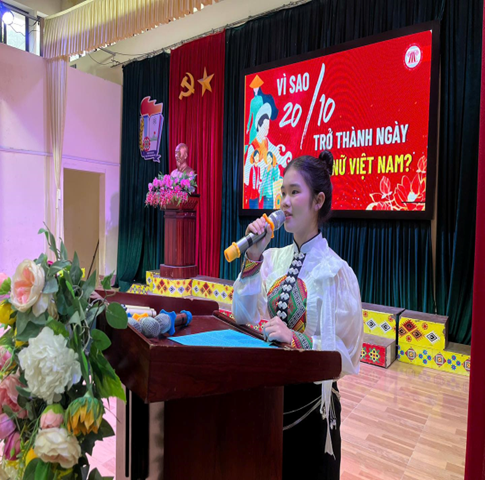 Bên cạnh những tiết mục văn nghệ duyên dáng, chương trình còn có phần thuyết trình về lịch sử và ý nghĩa của Ngày Phụ nữ Việt Nam do chính các em học sinh thân yêu thể hiện. Với giọng nói truyền cảm và sự chuẩn bị chu đáo, các em đã giúp các bạn học sinh trong nhà trường hiểu rõ hơn về tầm quan trọng của người phụ nữ Việt Nam qua từng thời kỳ, cũng như vai trò to lớn của họ trong đời sống hôm nay.