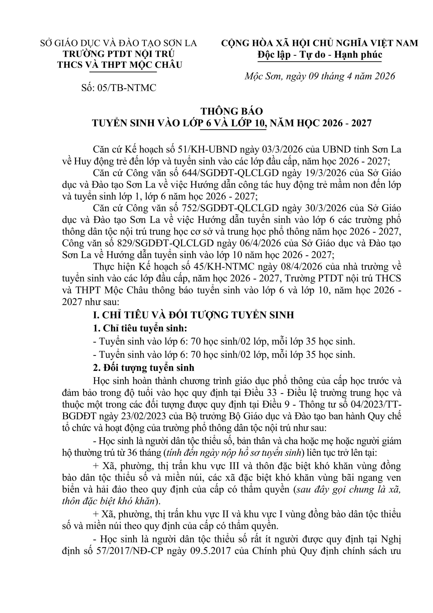 • Thông báo: Tuyển sinh Khối 6 và Khối 10 năm học 2026 – 2027